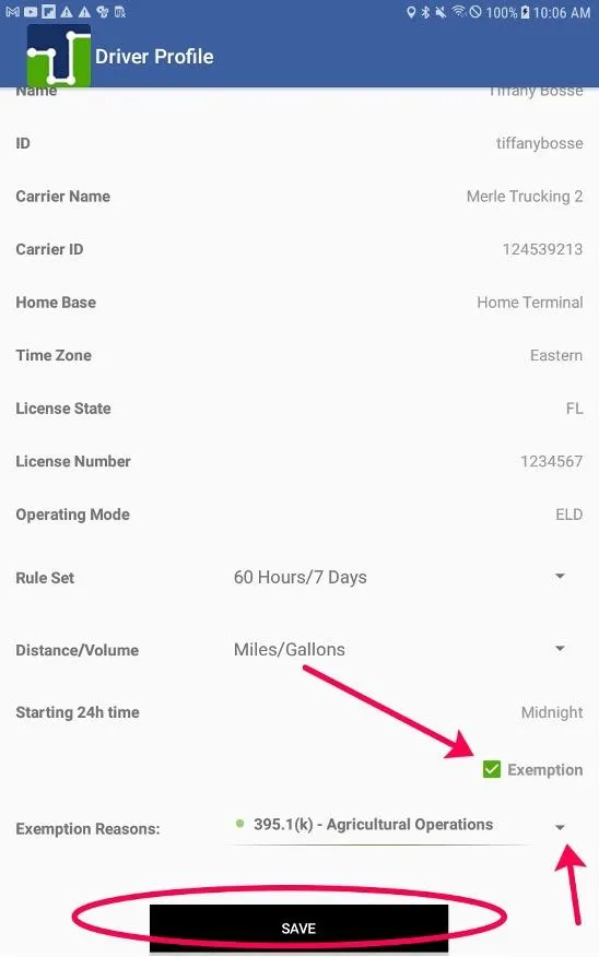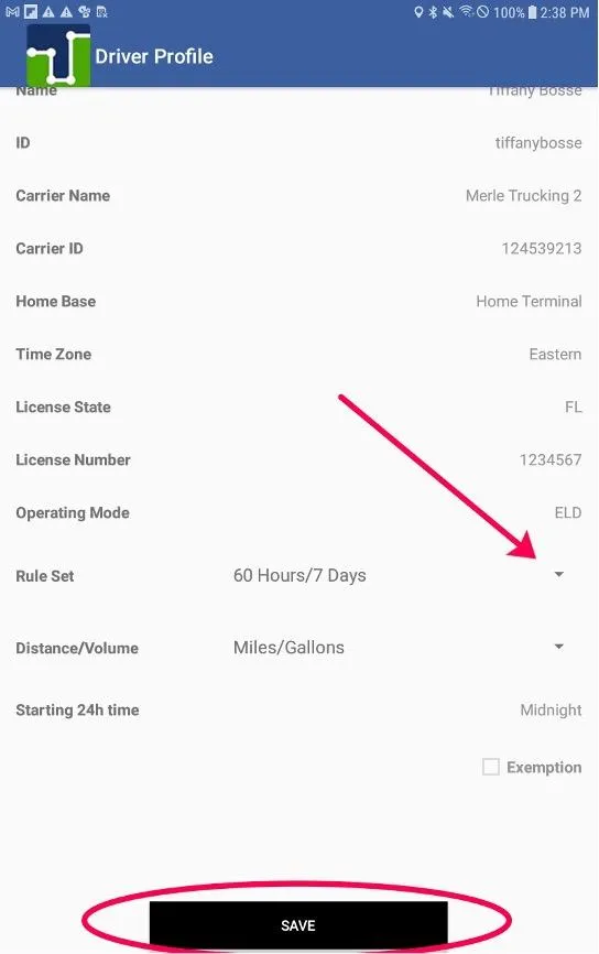4. Ensure the driver taps Save after making their selection