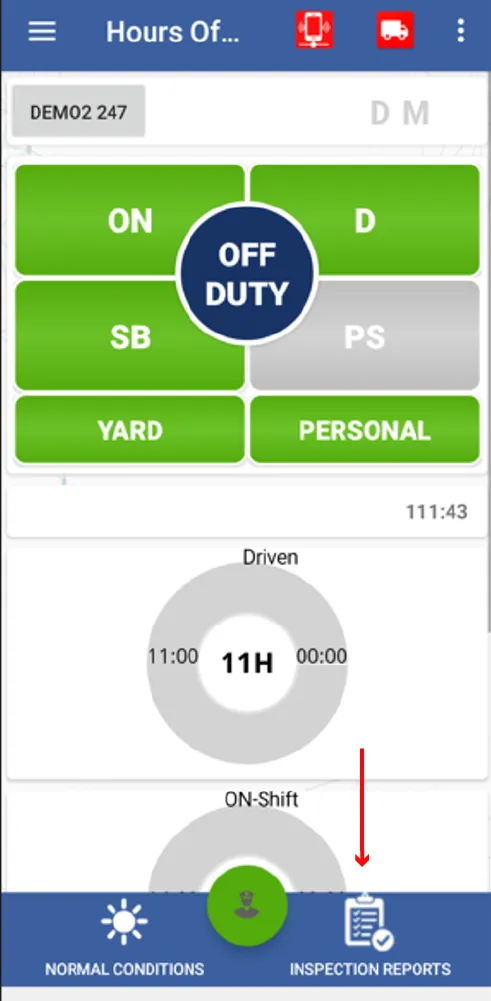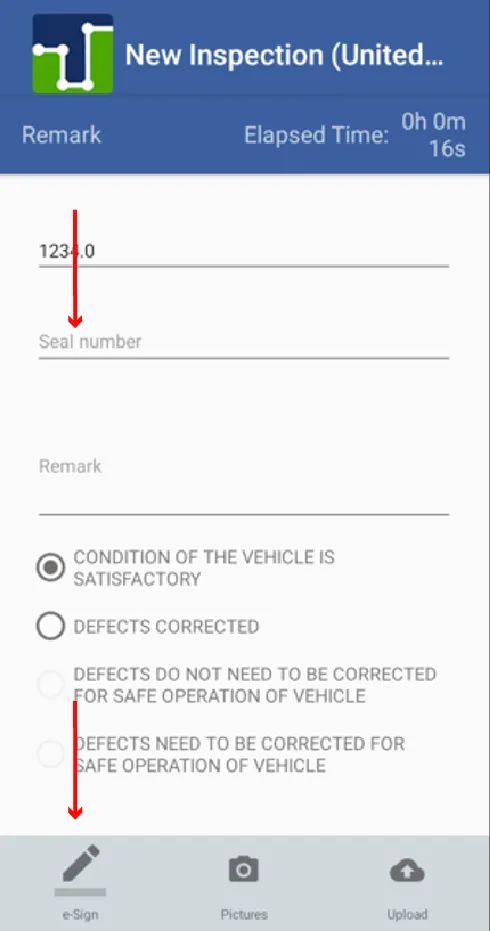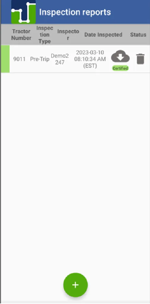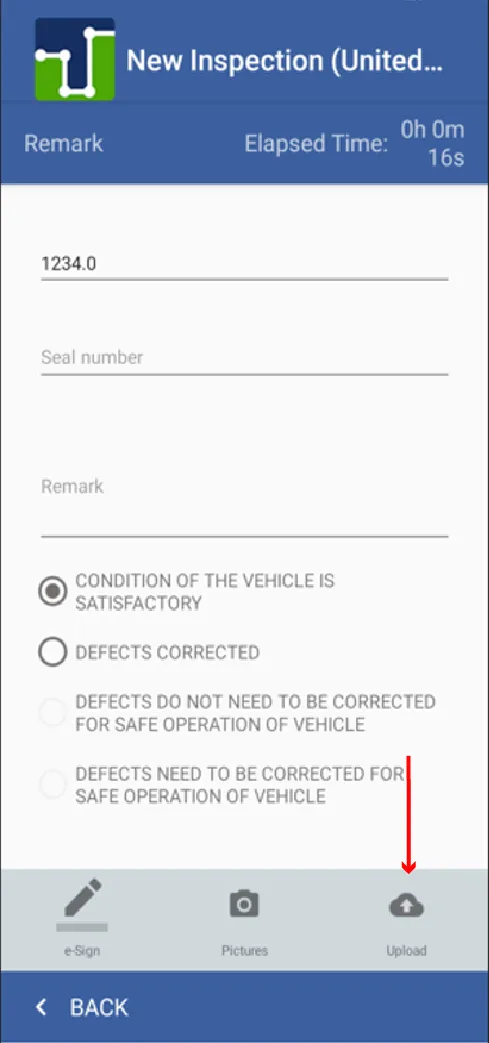 13. When you press the back key, this screen appears again where you must press the cloud icon to be able to upload the inspection carried out.