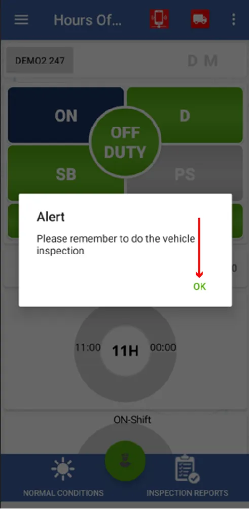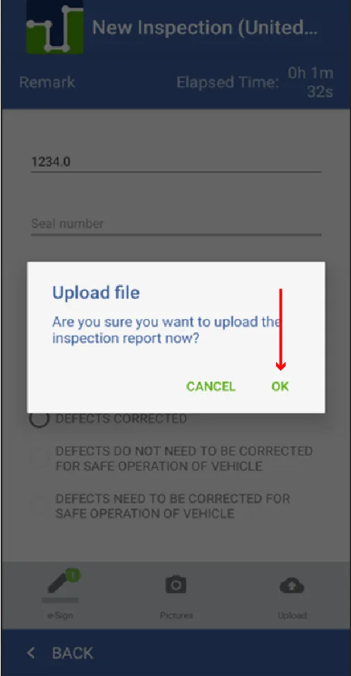 14. A confirmation appears if you want to upload the inspection report you must press ok