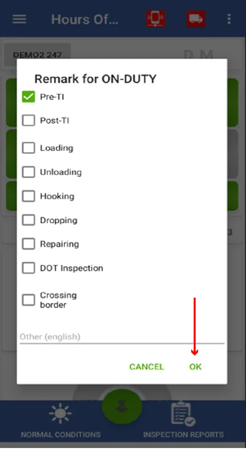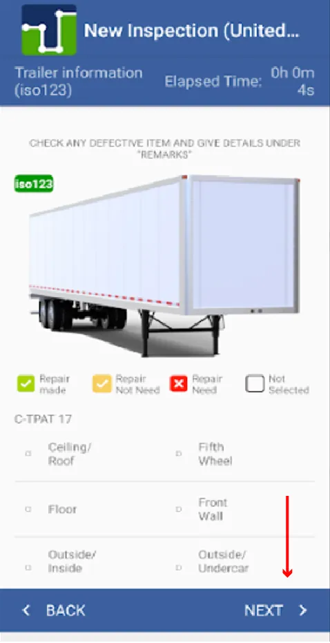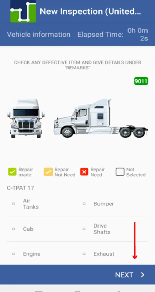 8. The same happens with the trailer, if the tractor has any mechanical damage they must press the option and if everything is in order they must press NEXT