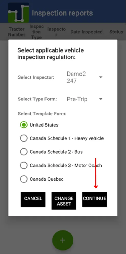 6. The following screen will appear where they must verify the inspection data and they must press continue