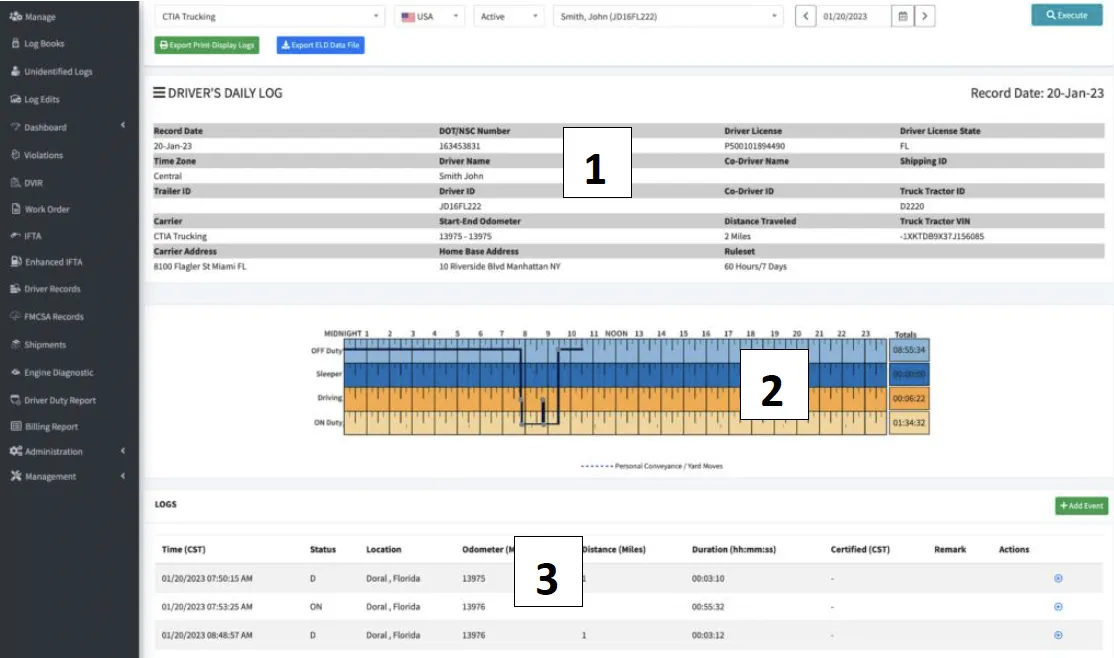 4. Click on Execute to see the Driver’s Daily Log records displayed on screen